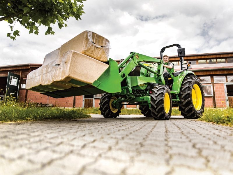 The tractor is available with a three-range electronic hydrostatic (eHydro) transmission.