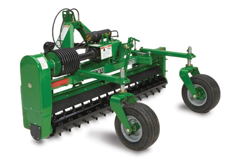 End plates on the Frontier™ PR11 Series Power Rakes are reinforced with hardened steel for longer life and are easily movable.