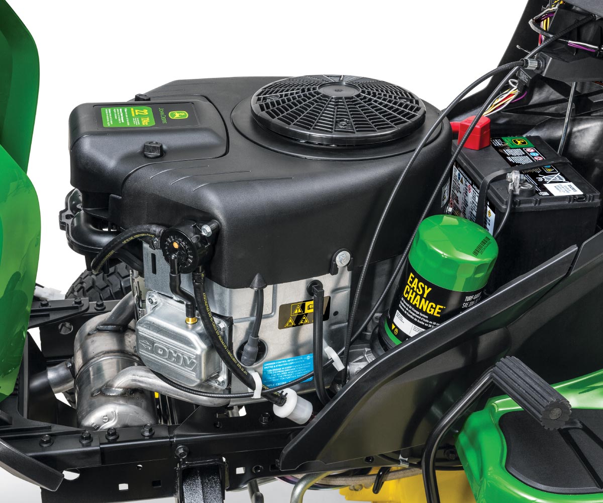 Everyone who uses the John Deere Easy Change system saves time and avoids the mess of a traditional oil change. In the past, many 100 Series Lawn Tractor owners rarely or never got around to changing their engine oil. With the 30-second oil change, even people who previously would not consider changing the oil themselves can easily do it. The Easy Change system is a no-mess, no-fuss solution the competition cannot match.