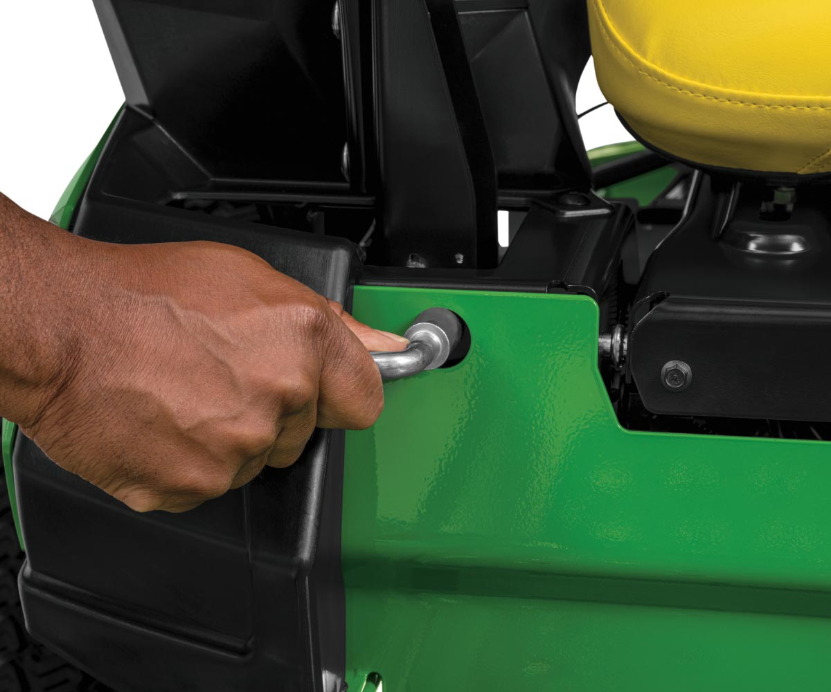 - Single-bolt adjustment makes setting wheels to the correct height for the cutting height quick and easy.
